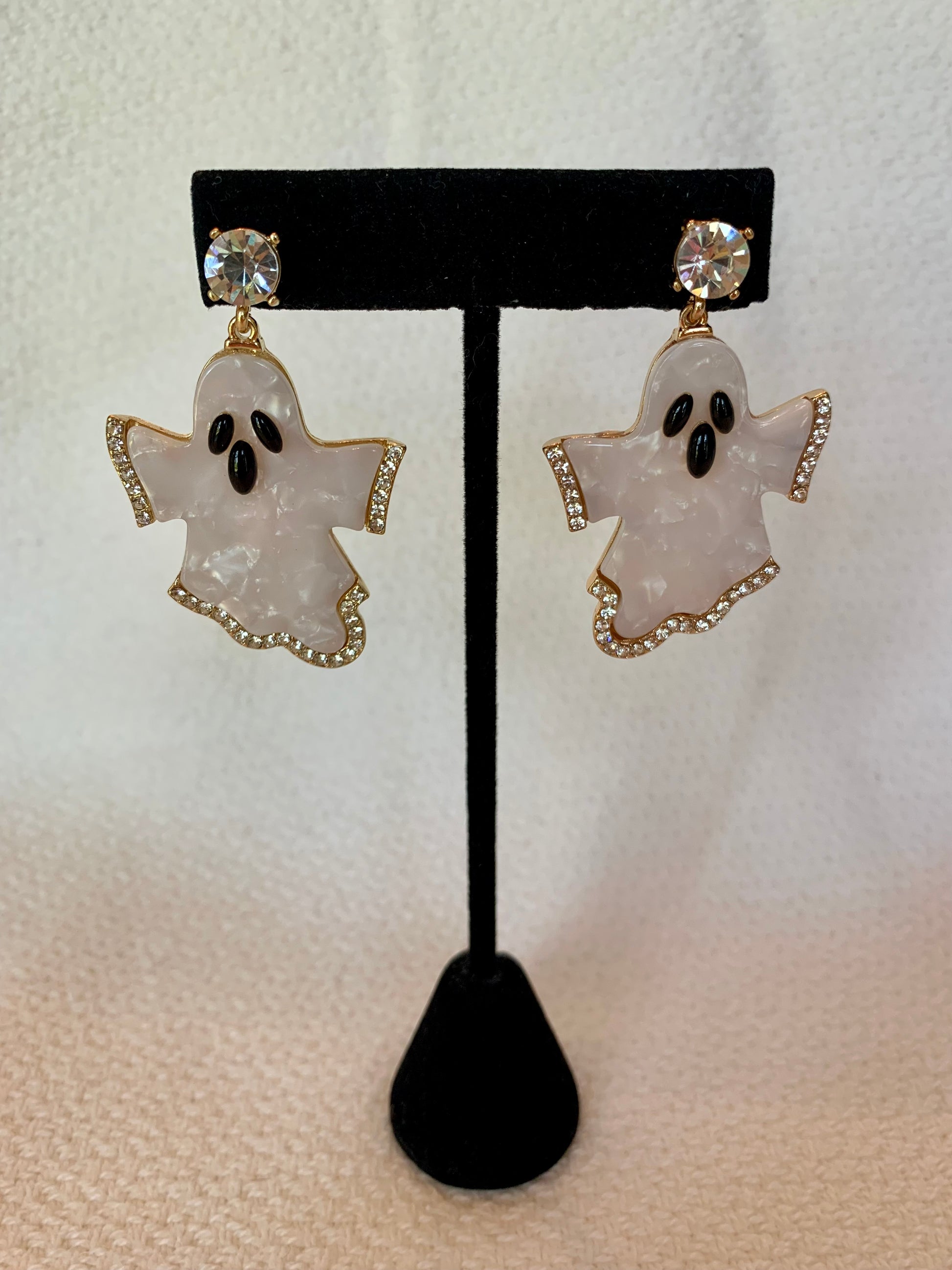 Acrylic Ghost with Rhinestone Detail Earrings