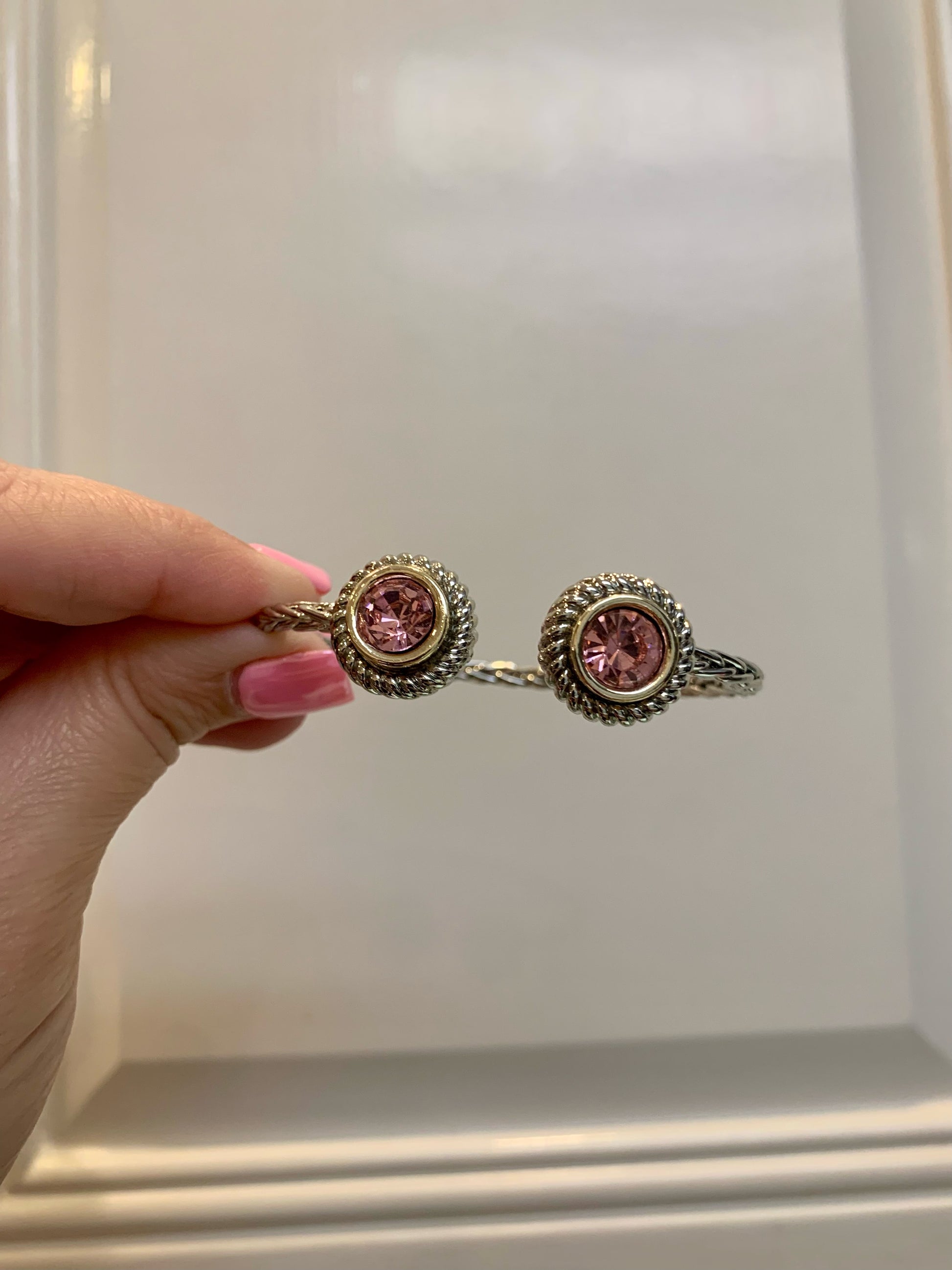 Thin Rope Bracelet with Crystal Stone Circle Ends